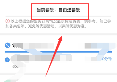 进入套餐界面,就可以看到你的当前套餐了,如下图所示